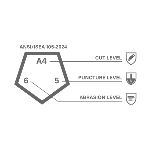 - ANSI/ISEA 105-2024 certified A4 cut level (ASTM F2992-15)