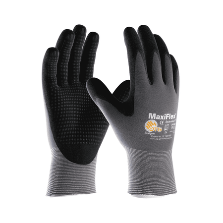 MaxiFlex Gloves are designed for maximum comfort, dexterity, and durability in high-precision handling tasks. The 34-844 model combines a seamless nylon knit shell with a nitrile-coated MicroFoam grip, enhanced by raised micro dots on the palm and fingers for added cushioning and wear resistance. Perfect for oily or dry environments, these gloves provide 360° breathability and are 25% thinner than typical foam nitrile gloves, making them an ideal choice for professionals who need extended wear without hand fatigue. Additionally, they are touchscreen compatible, so users can operate digital devices without removing their gloves.