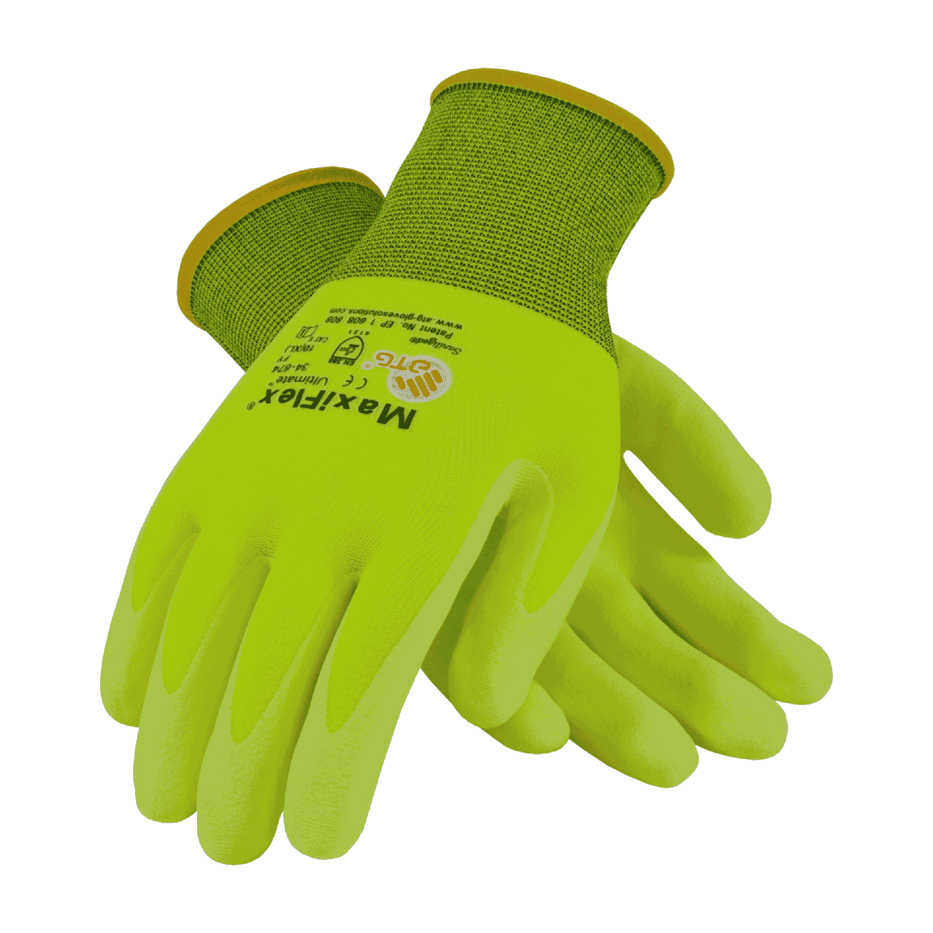 12 Pairs - MaxiFlex 34-874FY Ultimate Glove – Hi-Vis Touchscreen Work Gloves for Precision Handling and Breathable Comfort