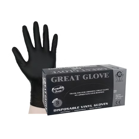 The GREAT GLOVE BLKNM700 is a high-quality, powder-free disposable glove designed for tasks requiring a clean and professional appearance. These black vinyl gloves feature a 2.5 mil thickness, providing a reliable barrier while maintaining excellent tactile sensitivity for delicate tasks. They are engineered to be completely latex-free, making them an ideal choice for users with skin sensitivities or latex allergies. With a smooth finish and a secure fit, these gloves offer both comfort and durability for short-term use in various industrial settings. Available in sizes ranging from small to extra-large, they ensure a proper fit for any member of your team.