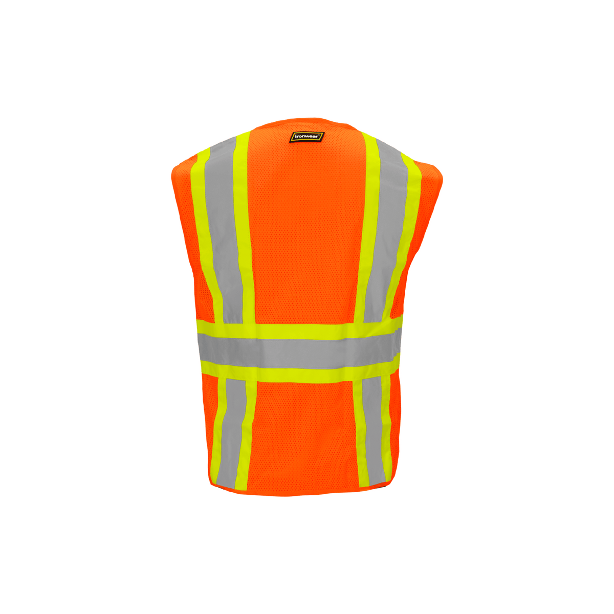 Ironwear 6 Pockets OrangeSafety Vest with Zipper Closure and 2 Clip Holders