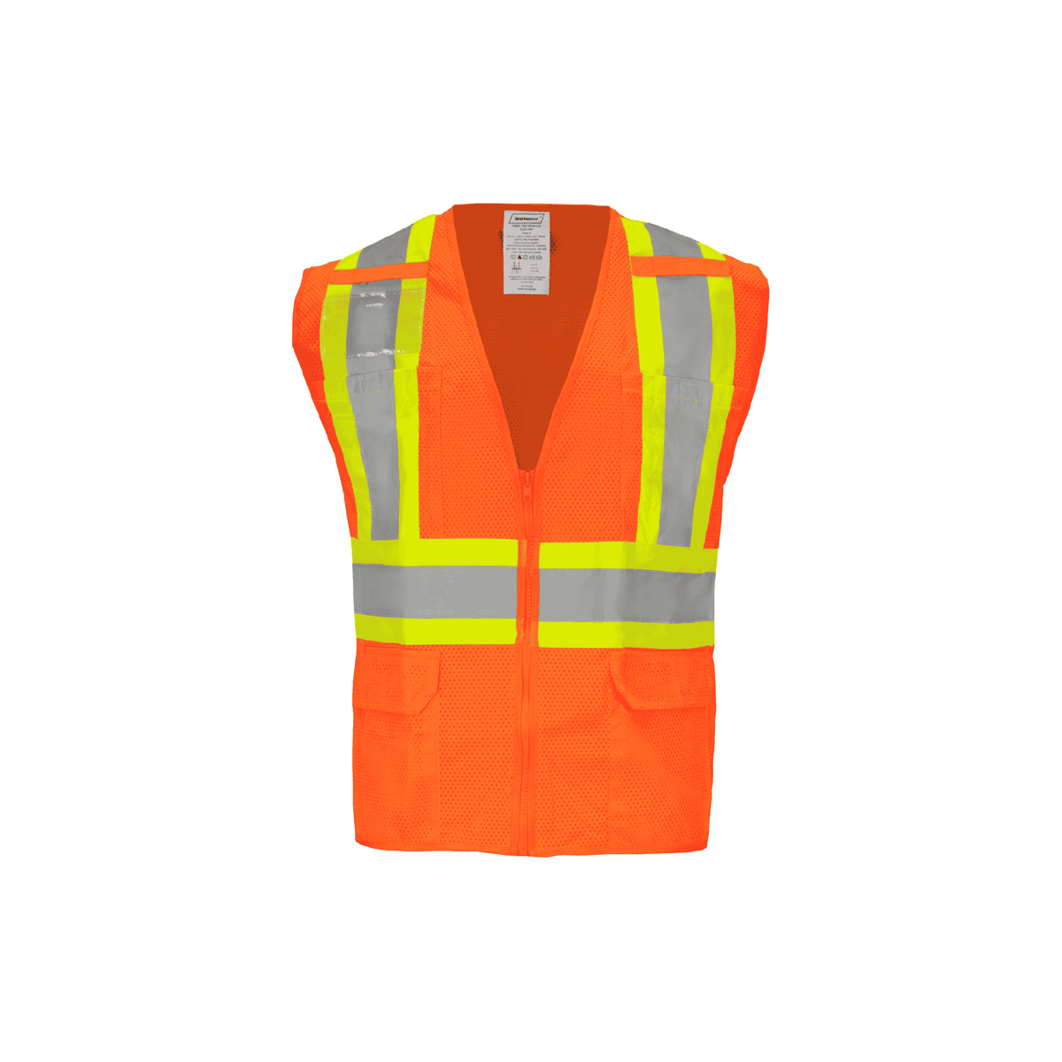 Class 2 Orange Safety Vest with Zipper Closure (6 Pockets)