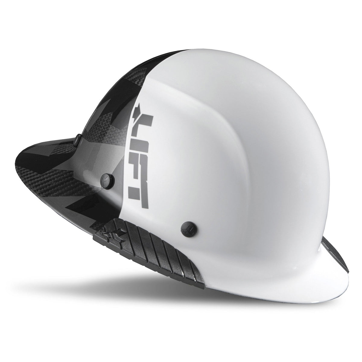 Built for professionals who demand top-tier protection, the Lift DAX FIFTY50 carbon fiber full brim hard hat combines high-performance materials with a bold white/black 50-50 aesthetic. Constructed from carbon fiber reinforced resin, it delivers exceptional impact resistance and heat tolerance—tested to withstand radiant heat up to 350˚F (177˚C). The full brim design adds 360° protection against sun, debris, and harsh jobsite elements, making it ideal for foundries, forging, and heavy-duty industrial environments.