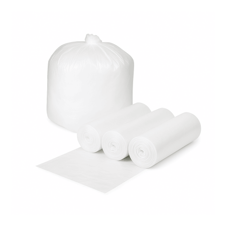 The CL243308 clear trash bag offers a strong and economical solution for bulk waste containment in offices, schools, hospitality, and light commercial environments. Manufactured from 100% virgin high-density polyethylene (HDPE), this 30-gallon liner provides excellent tensile strength while remaining lightweight. At 30" x 37" with a 10-micron thickness and 0.39 mil gauge, it’s designed for managing bulky but non-sharp waste. The star-sealed bottom ensures even weight distribution and leak resistance, while space-saving, coreless rolls make storage and dispensing more efficient.