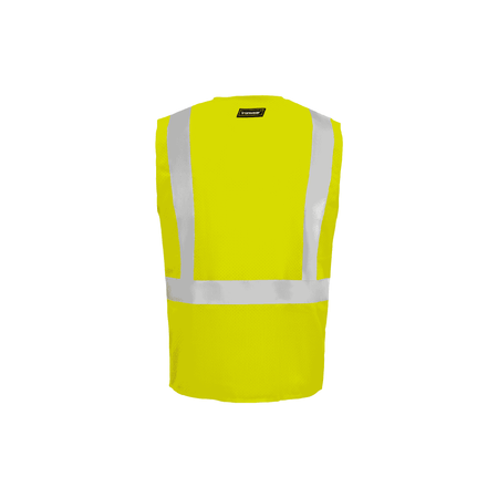 This 100% polyester mesh safety vest is designed for maximum visibility and performance. Featuring hi-vis lime polyester binding and high-visibility 2-inch silver reflective tape that covers the shoulders and wraps around the torso, this vest ensures superior recognition in low-light conditions. It includes two radio clip holders for convenient access to communication devices. Certified to ANSI/ISEA 107 and rated as Type R, Class 2, it secures with a zipper front closure and offers practical storage with five well-placed pockets.