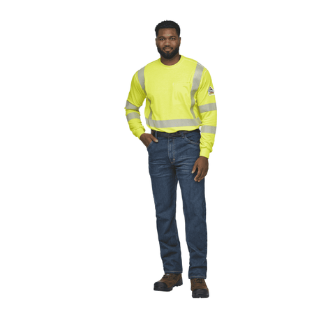 Men's Lightweight FR Hi-Visibility Long Sleeve T-Shirt - CAT 2, NFPA 2112 Compliant
