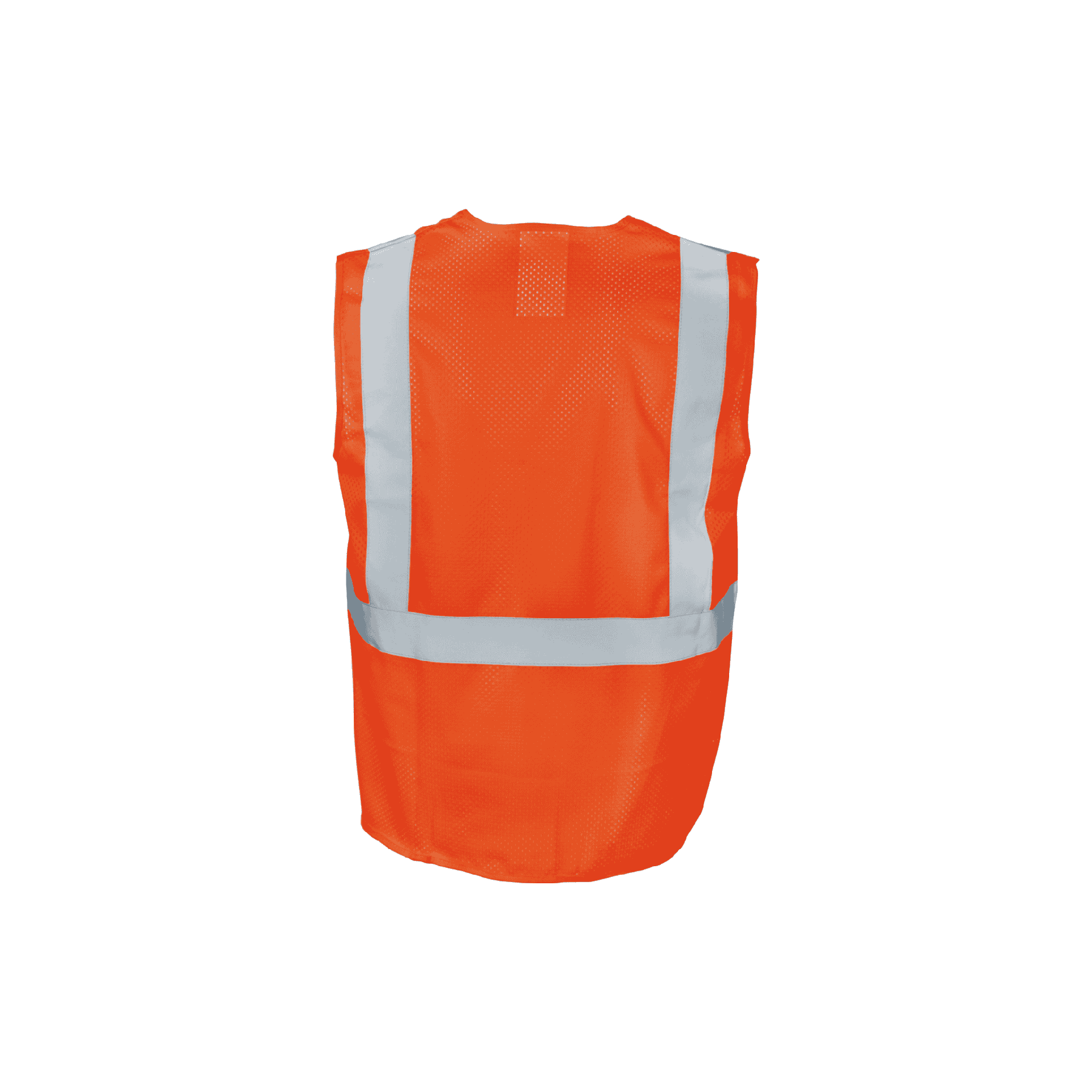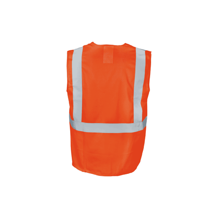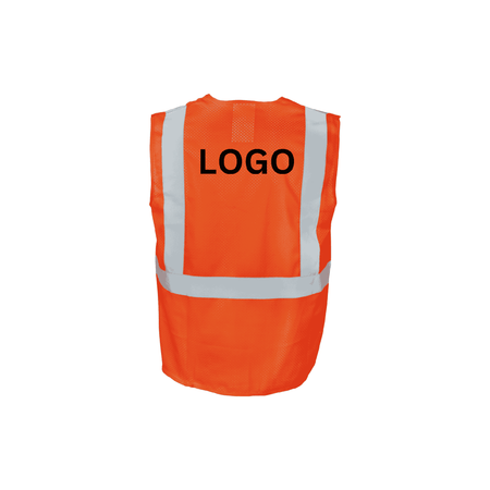 This high visibility vest is designed to ensure maximum safety and recognition on the job. It features 2-inch silver reflective tape arranged in a suspender pattern over the shoulders, complemented by 360° continuous reflective bands that encircle the torso for all-around visibility. Made from 100% polyester mesh fabric and accented with orange polyester binding, the vest boasts a vibrant orange color. Certified as a Class 2 garment under ANSI/ISEA 107-2015 standards, it secures with a front hook & loop closure. This streamlined design does not include any pockets.