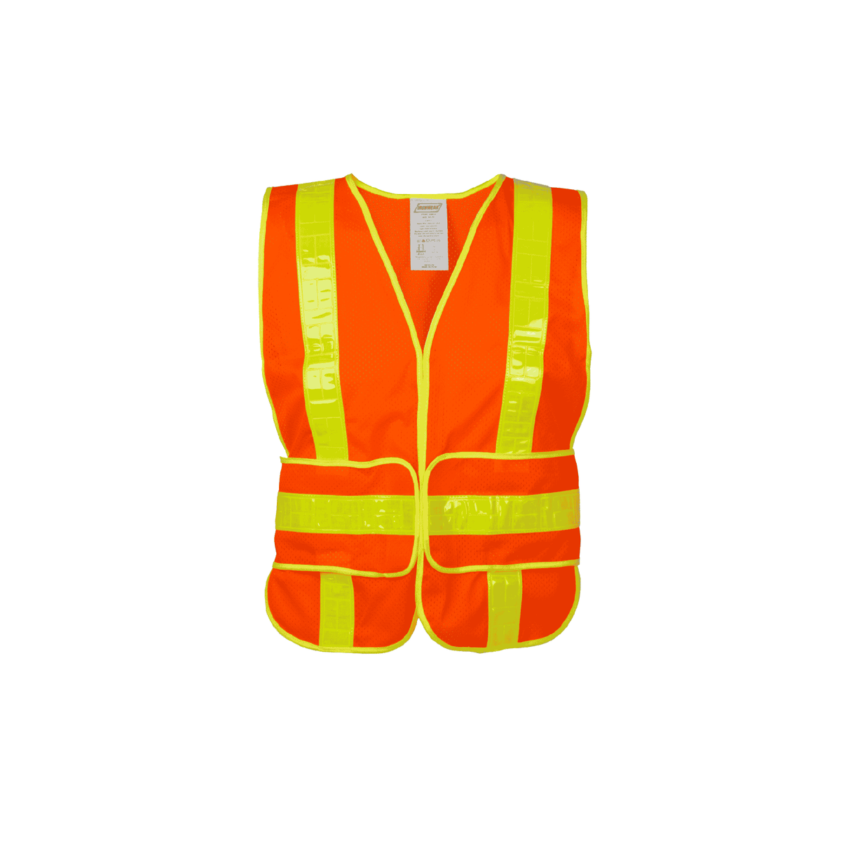 This high-visibility safety vest is made from durable orange polyester mesh fabric with lime polyester binding for enhanced contrast and visibility. It features 2” lime reflective tape along with a 1-3/8” lime chevron pattern on the back for increased safety. Designed for comfort and ease of use, it has an adjustable hook & loop wraparound closure. This Class 2 vest meets ANSI/ISEA 107-2015 standards, making it an excellent choice for high-visibility work environments.