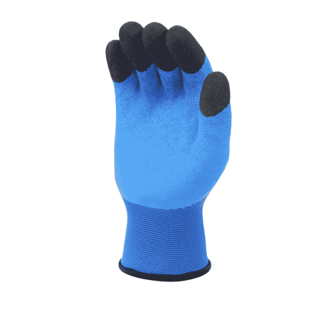 The LX755 gloves are designed for comfort and protection during cold weather conditions. The 15 gauge blue polyester shell provides flexibility and the 10 gauge acrylic napping lining offers warmth. The grey latex coating has a sandy finish with thumb dipping, ensuring a superior grip and abrasion resistance. These gloves are available in sizes S to 2XL, providing a perfect fit for all users. Suitable for various applications including construction, transportation, and outdoor activities.