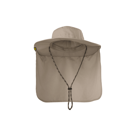 This waterproof boonie hat offers dependable sun and moisture protection in a lightweight, functional design. Constructed from durable 70D polyester, it features a built-in neck protector and a moisture-wicking headband to keep you cool and dry. Its khaki color offers a clean, low-profile look while the adjustable head and chin straps ensure a snug, secure fit for all-day wear in rugged outdoor conditions.